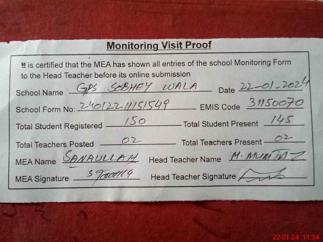 | EMIS Code: 31150070 | Name of School: GPS SOBHEY WALA | |||