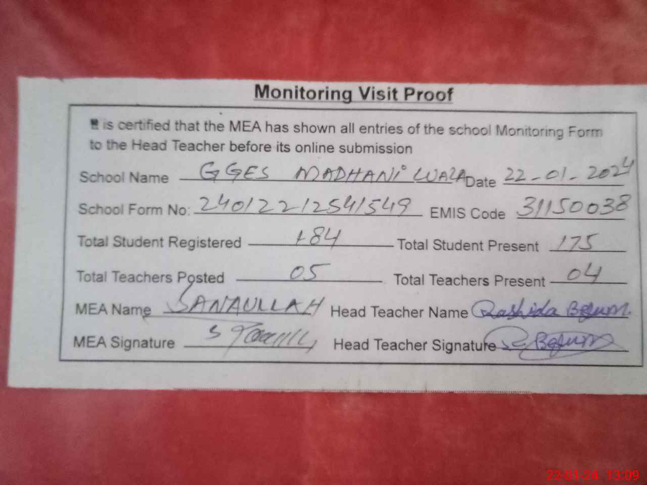 | EMIS Code: 31150038 | Name of School: GGES MADHAANI WALA | |||