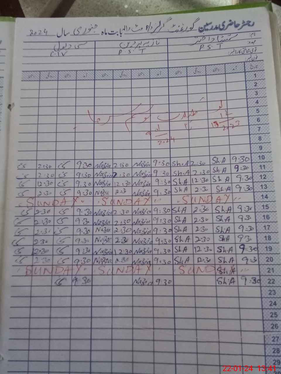 | CNIC | Full Name | Designation | R/C | Absence During Last Calender Month |