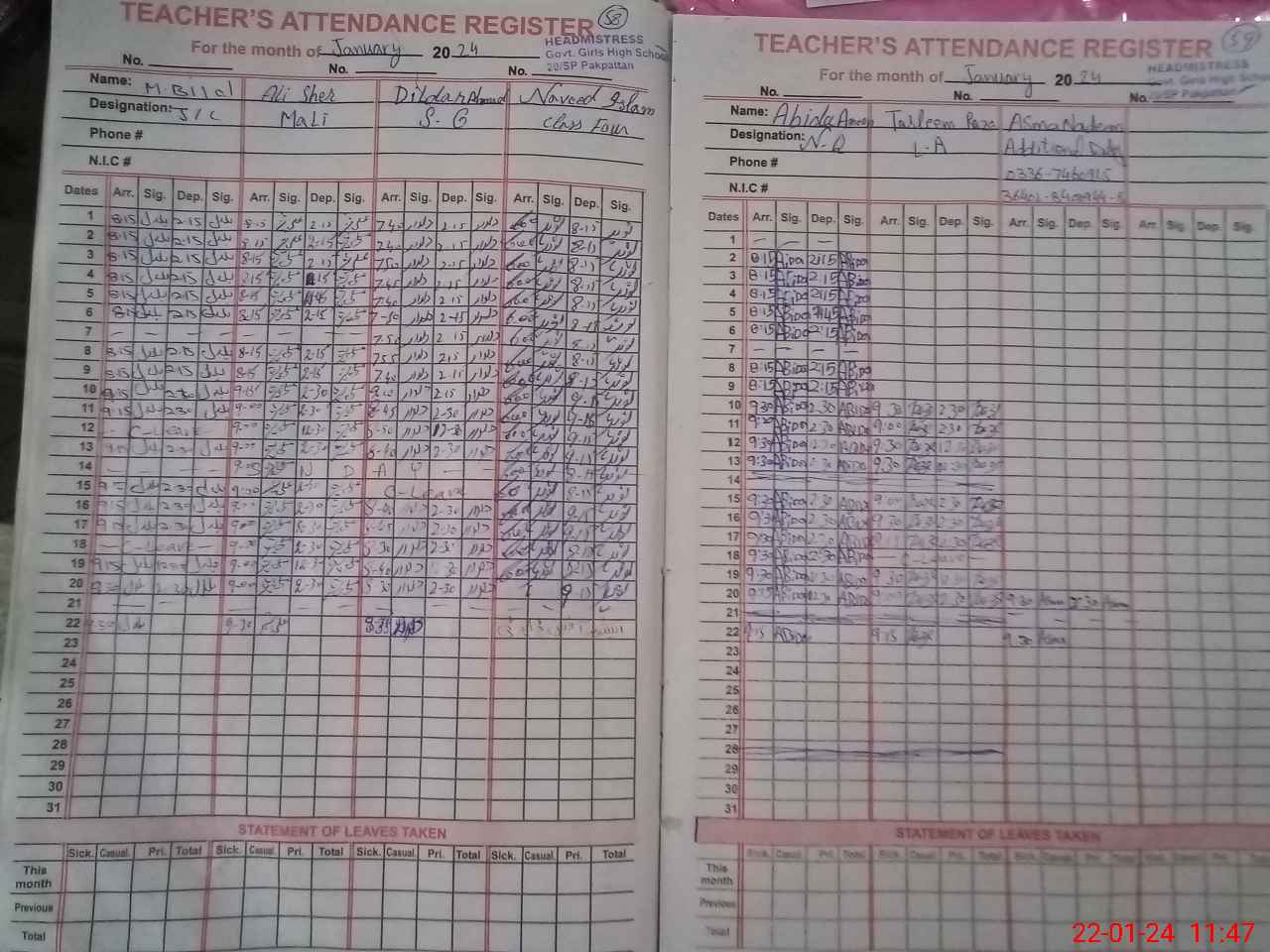 | CNIC | Full Name | Designation | R/C | Absence During Last Calender Month |