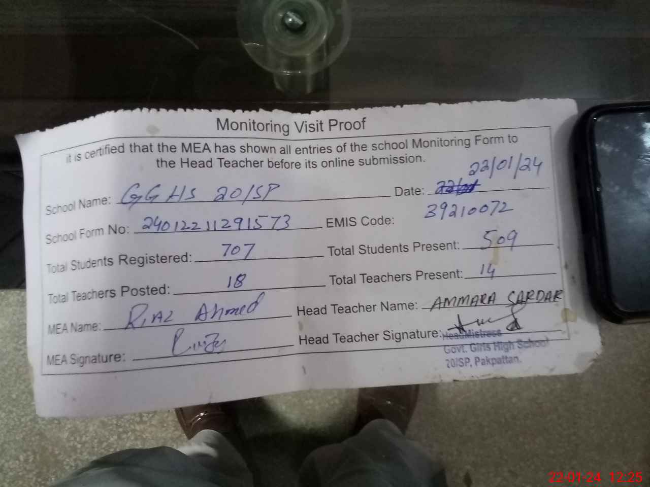 | EMIS Code: 39210072 | Name of School: GGHS 20 SP | |||