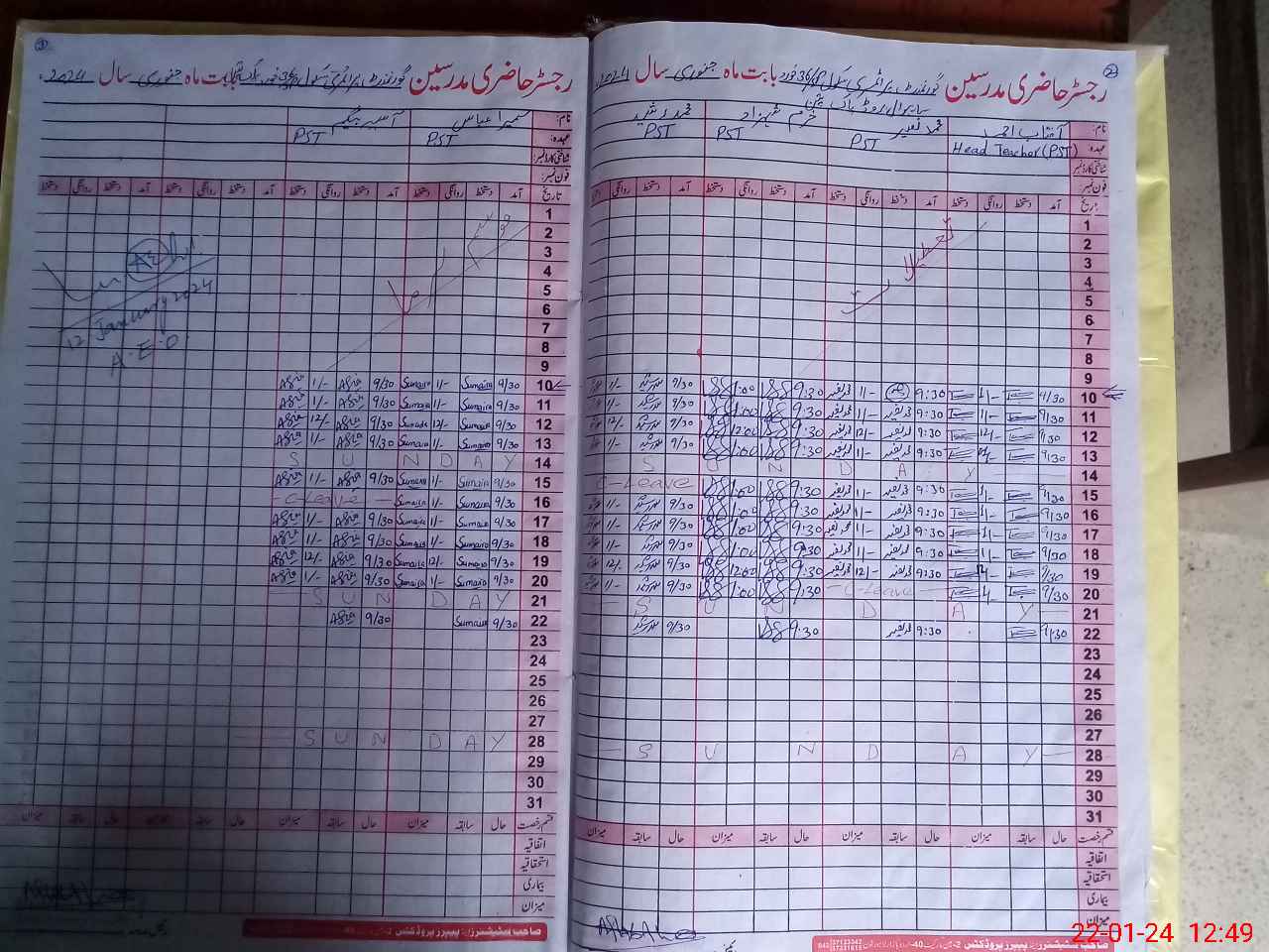 | CNIC | Full Name | Designation | R/C | Absence During Last Calender Month |