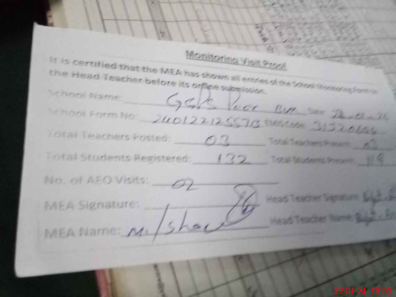 | EMIS Code: 31320694 | Name of School: GGPS RAIS PEER BUX | |||