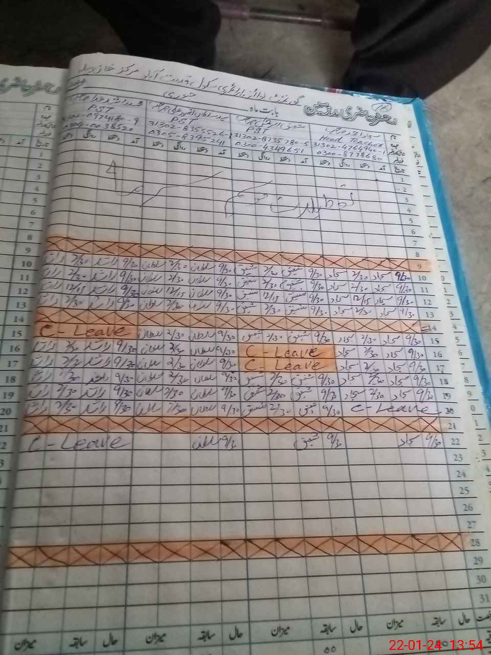 | CNIC | Full Name | Designation | R/C | Absence During Last Calender Month |