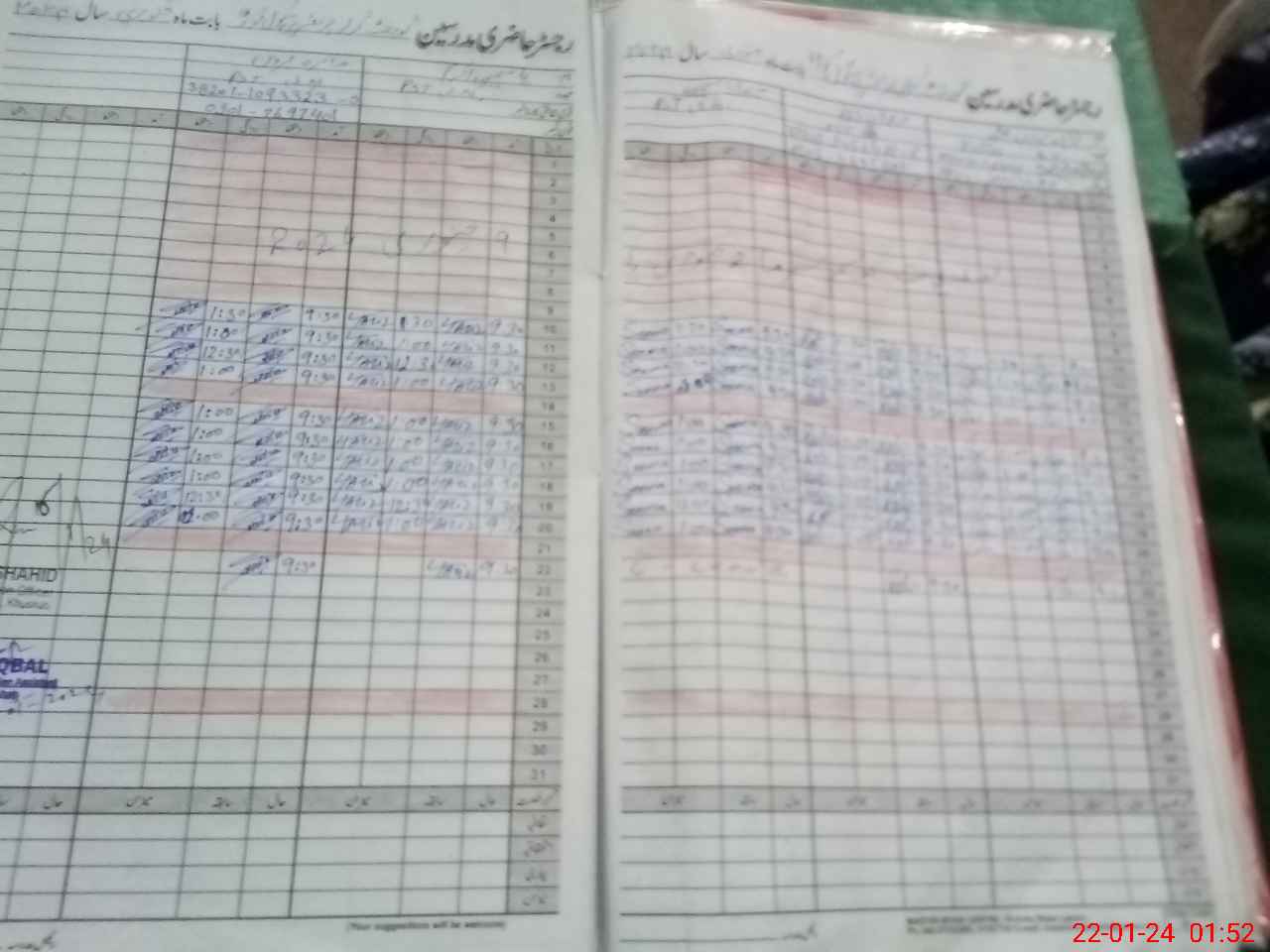 | CNIC | Full Name | Designation | R/C | Absence during last cal. month |