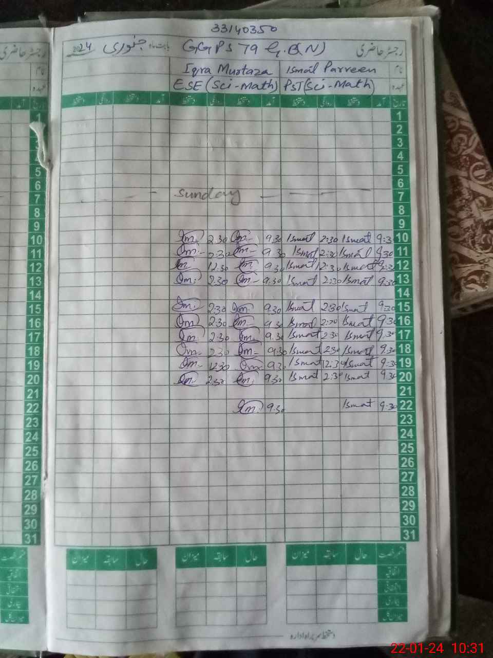 | Name: IS**** PA**** Designation: (School Headmaster's/Headmistress's) ESE (Sci Math) Phone/Cell Number: 03**** |