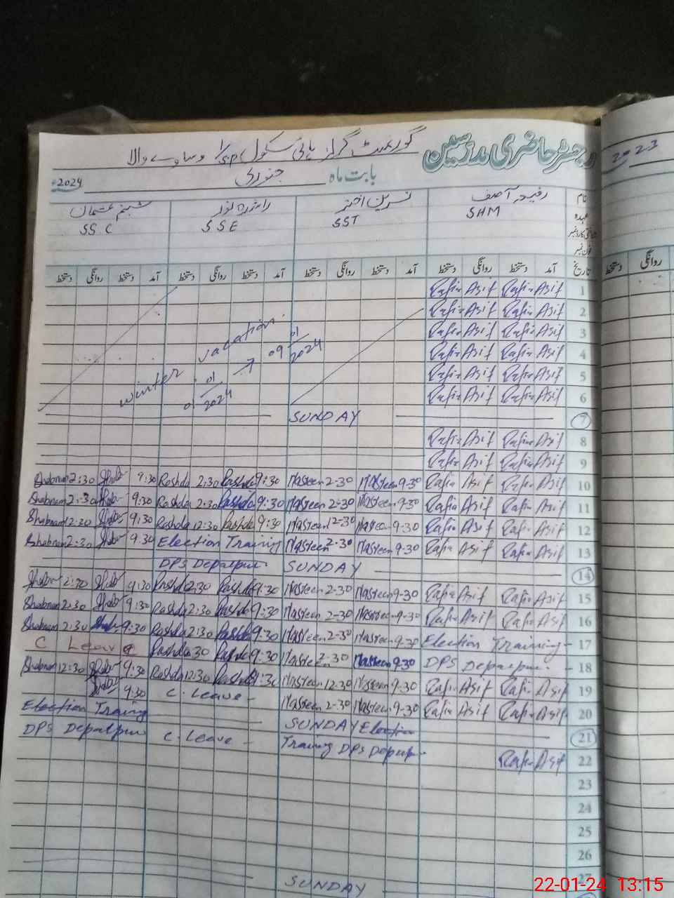 | CNIC | Full Name | Designation | R/C | Absence During Last Calender Month |