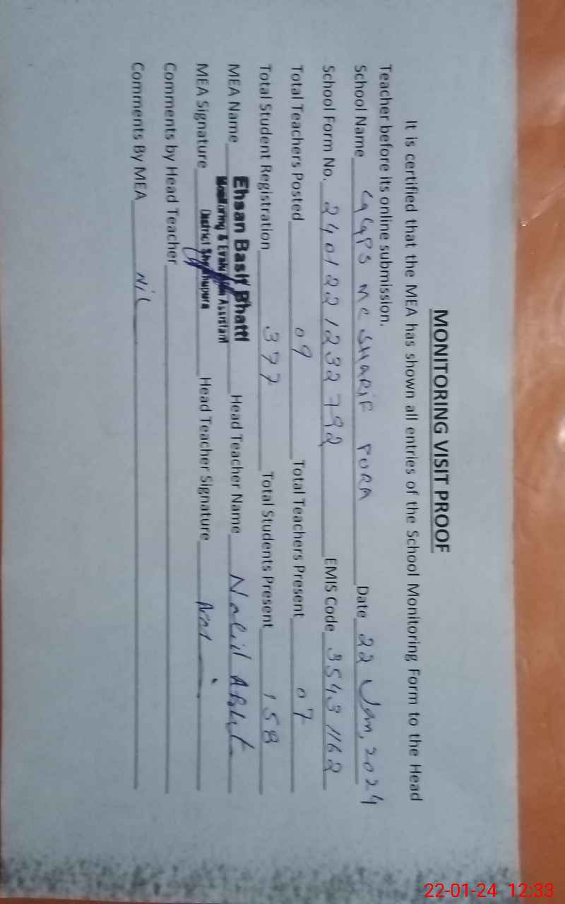 | EMIS Code: 35431162 | Name of School: GGPS MC SHARIF PURA | |||