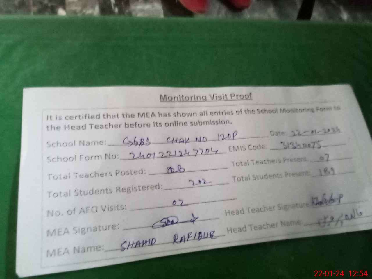 | EMIS Code: 31340075 | Name of School: GGES CHAK 120/P | |||