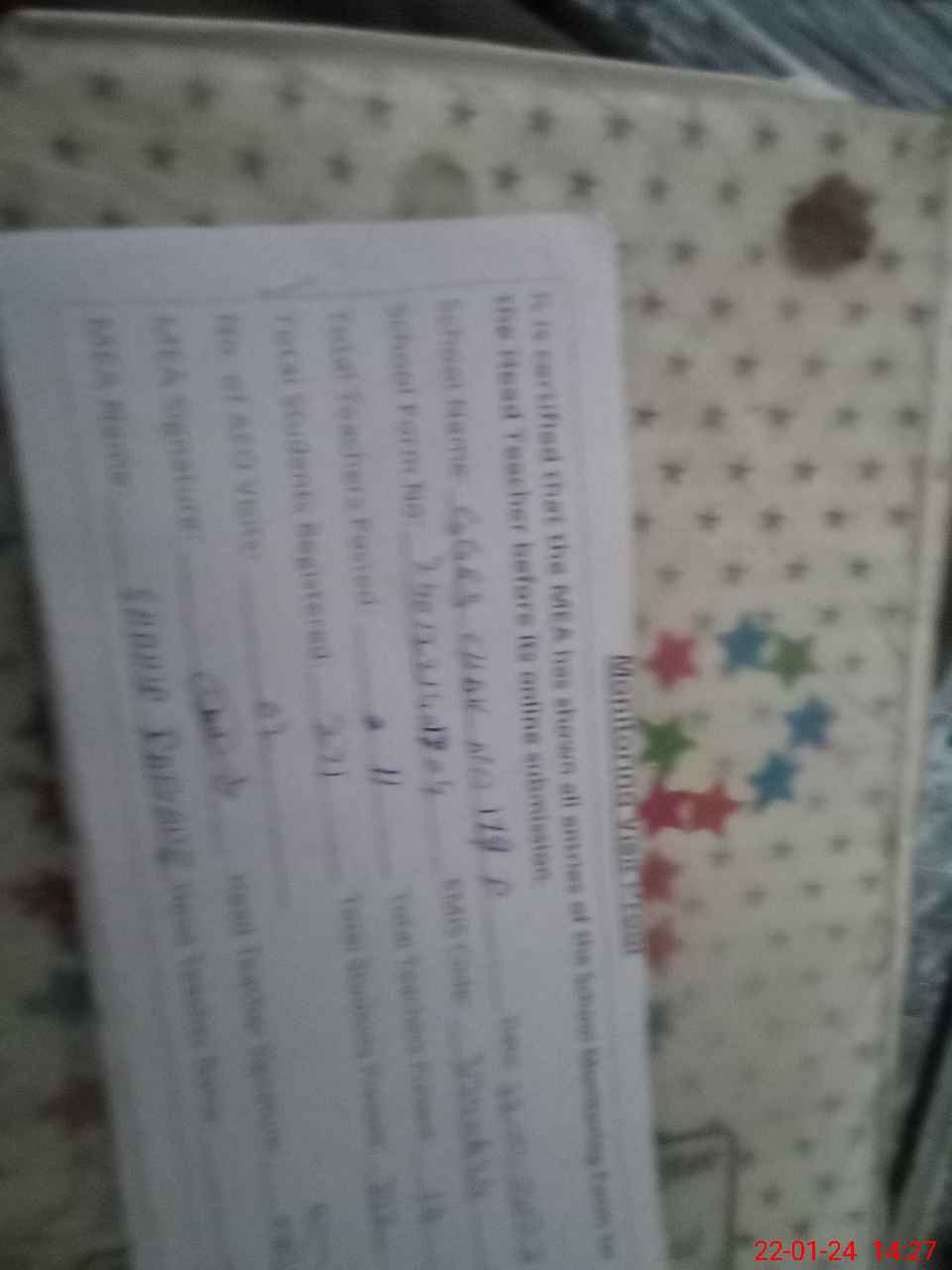 | Name: SA**** AN**** Designation: (School Headmaster's/Headmistress's) EST Phone/Cell Number: 03**** |