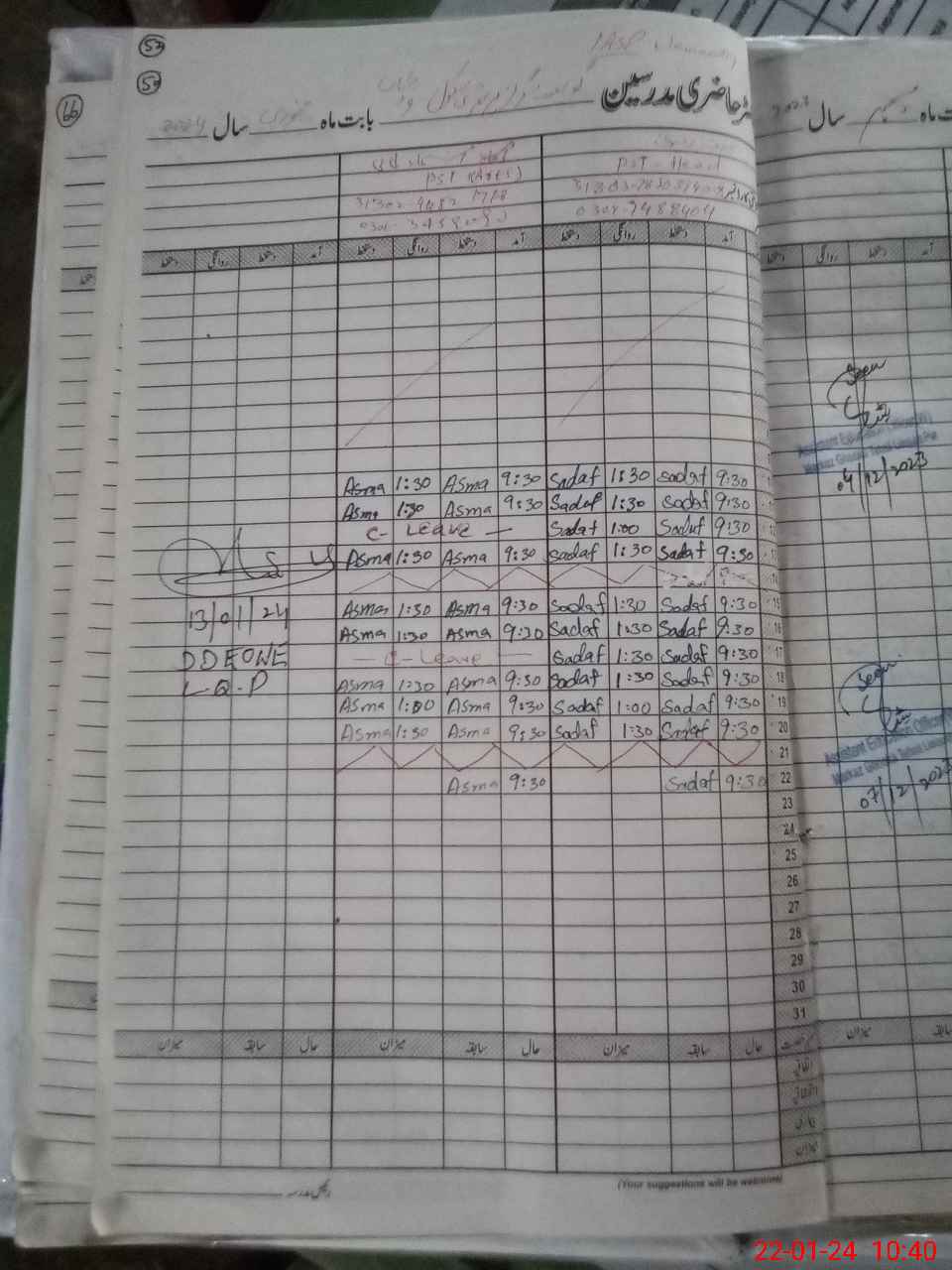 | CNIC | Full Name | Designation | R/C | Absence During Last Calender Month |