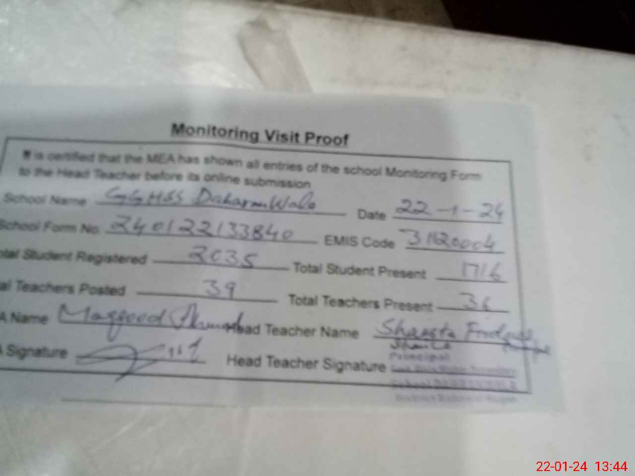 | EMIS Code: 31120004 | Name of School: GGHSS DAHRAN WALA | |||