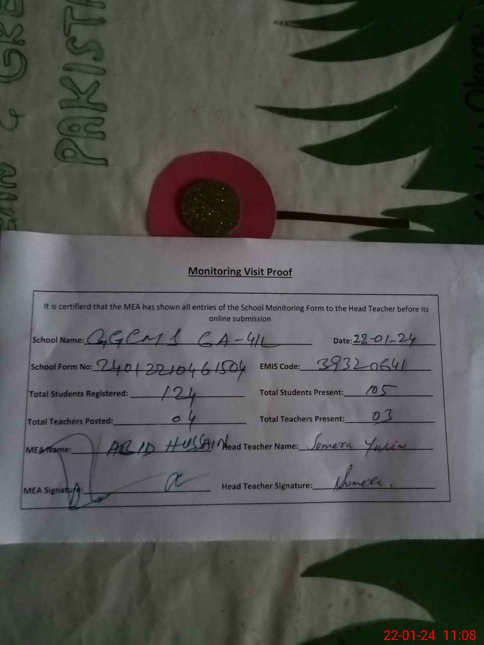 | EMIS Code: 39320641 | Name of School: GGCMS 6-A/4-L | |||