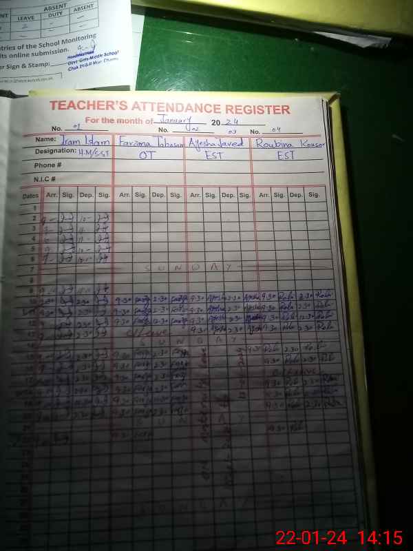 | Name: Ir**** Is**** Designation: (School Headmaster's/Headmistress's) SST Sc Phone/Cell Number: 03**** |