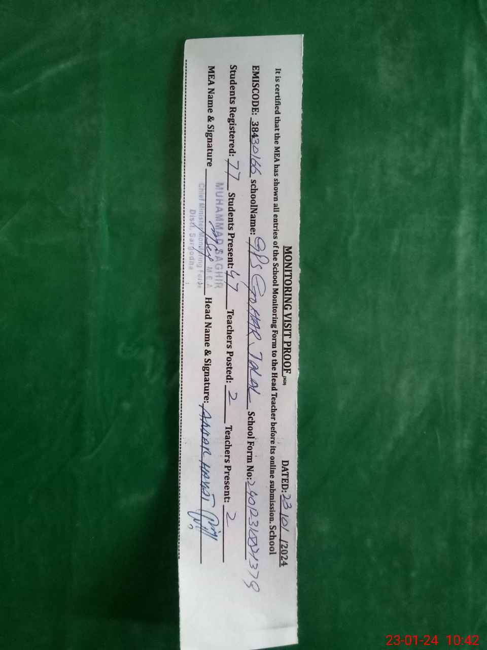 | EMIS Code: 38430166 | Name of School: GPS GOHAR JALAL | |||