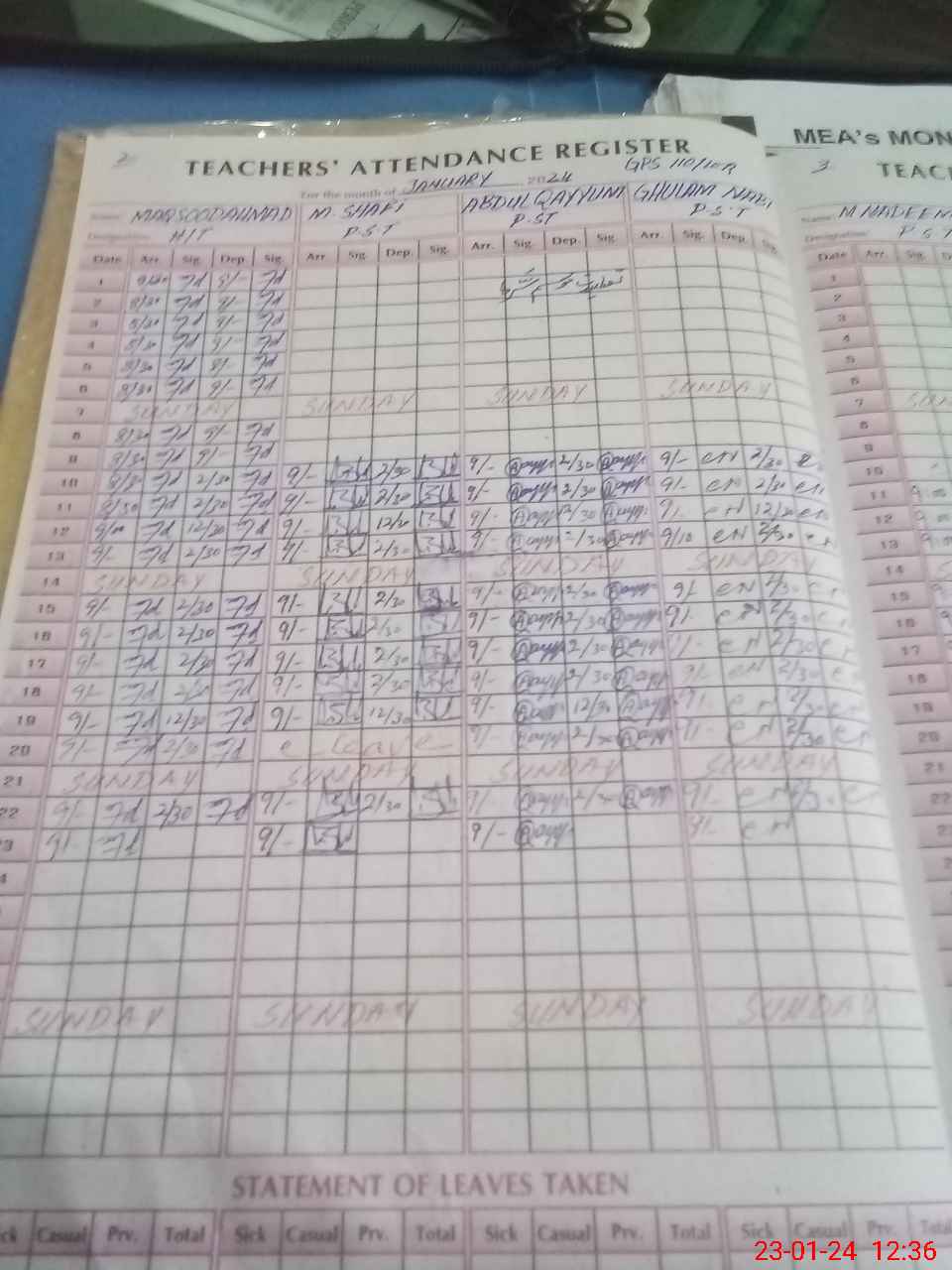 | Monitoring Date: 23-01-2024 | Start Time: 23-01-2024 12:10 PM | End Time: 23-01-2024 12:49 PM | Name of MEA: M.Is**** (S**** 03**** | |