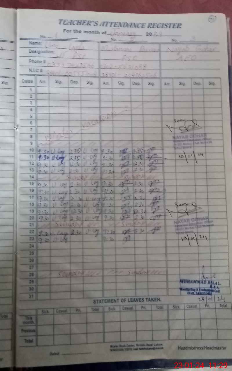 | Name: UM**** LA**** Designation: (School Headmaster's/Headmistress's) PST Phone/Cell Number: 03**** |