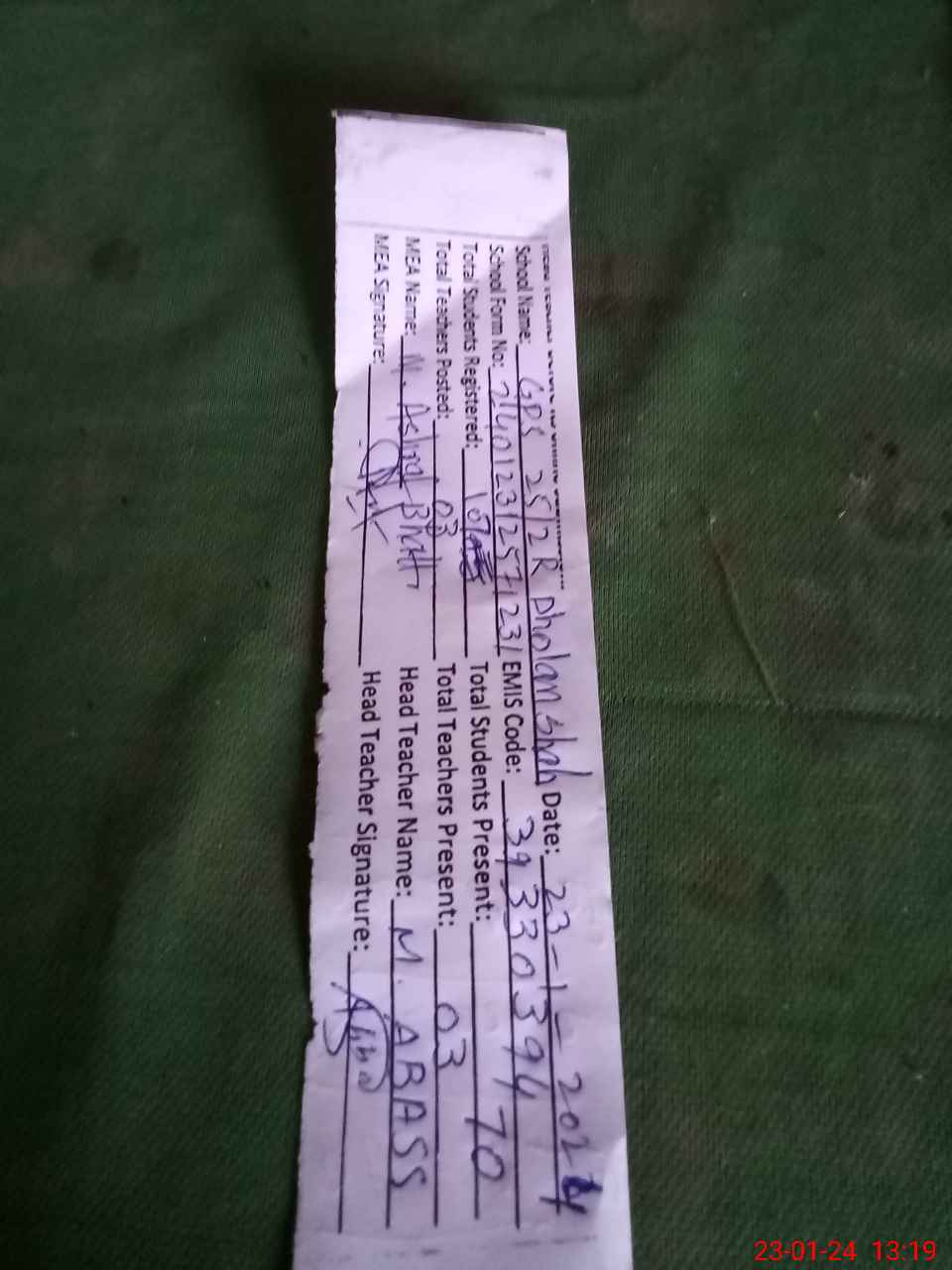 | EMIS Code: 39330394 | Name of School: GPS CHAK NO. 25/2-R DHOLAN SHAH | |||