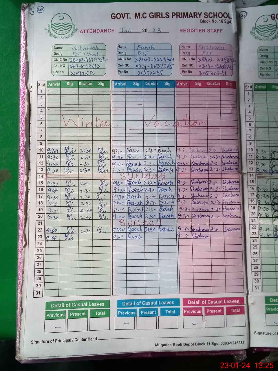 | CNIC | Full Name | Designation | R/C | Absence During Last Calender Month |
