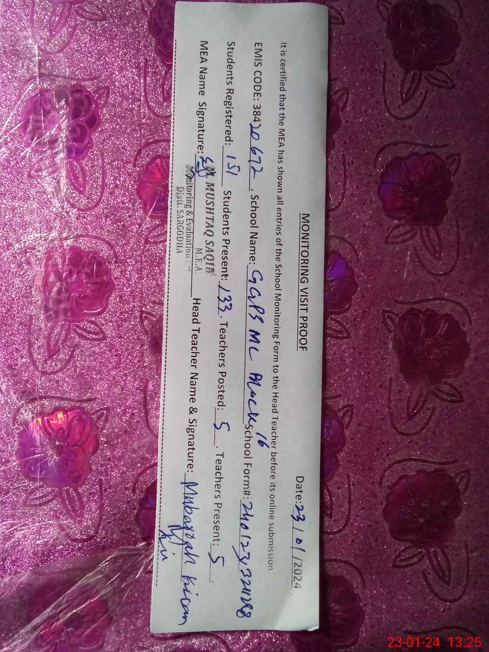 | EMIS Code: 38420672 | Name of School: GGPS MC BLOCK NO.16 SARGODHA | |||