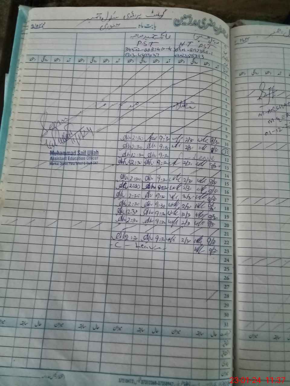 | Name: Mu**** Hu**** Designation: (School Headmaster's/Headmistress's) PST Phone/Cell Number: 03**** |