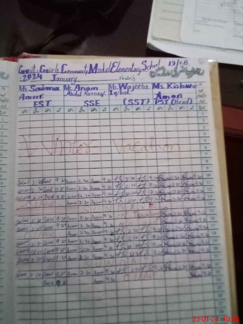 | Leave | Duty | Absent | Maternity | Medical | Ex- Pak |