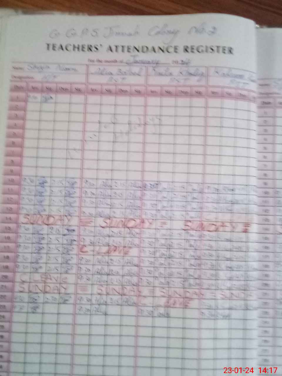 | CNIC | Full Name | Designation | R/C | Absence During Last Calender Month |