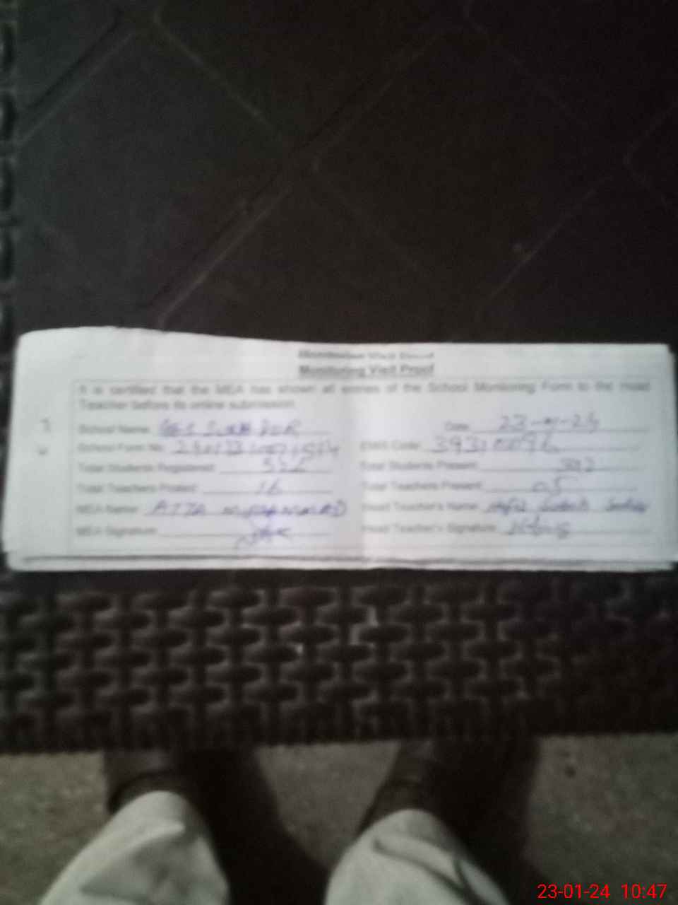 | Attendance Register | Head Teacher | MEA with School | Visit Proof |