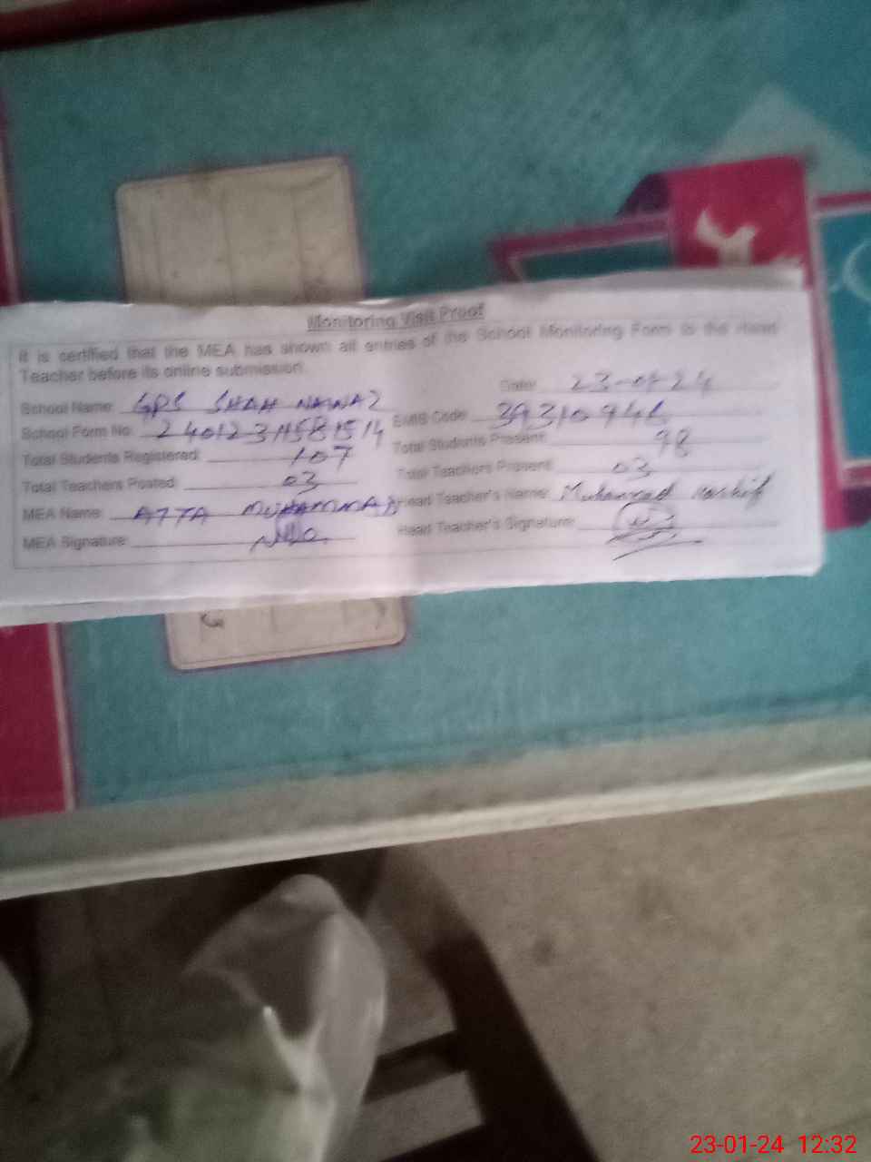 | EMIS Code: 39310946 | Name of School: GPS SHAH NAWAZ | |||