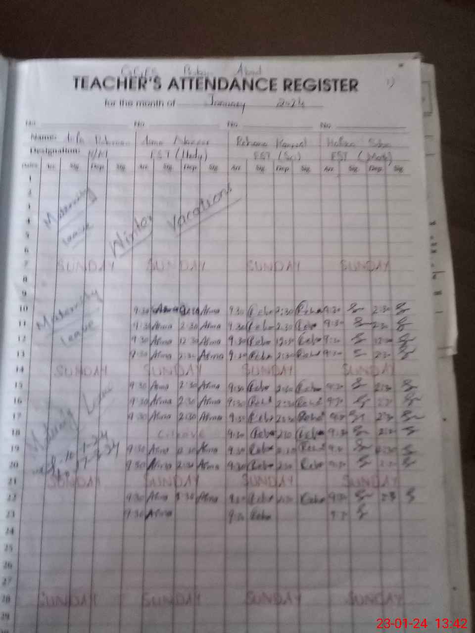 | Leave | Duty | Absent | Maternity | Medical | Ex- Pak |