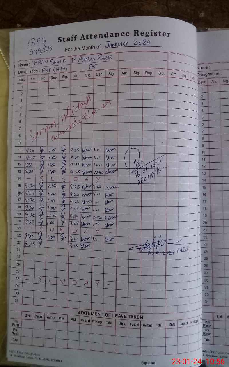 | Name: IM**** SH**** Designation: (School Headmaster's/Headmistress's) PST Phone/Cell Number: 03**** |