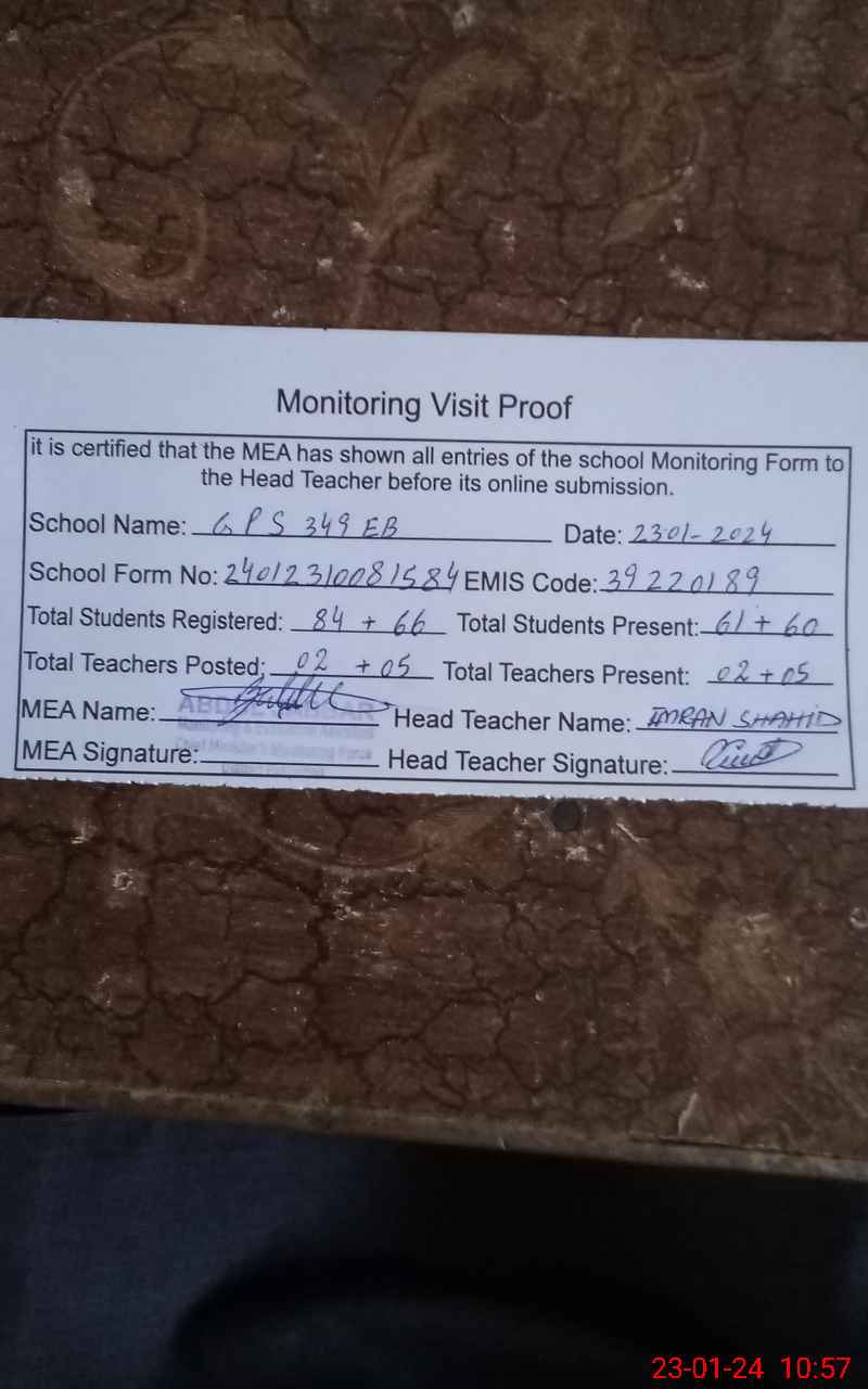 | EMIS Code: 39220189 | Name of School: GPS 349 EB | |||