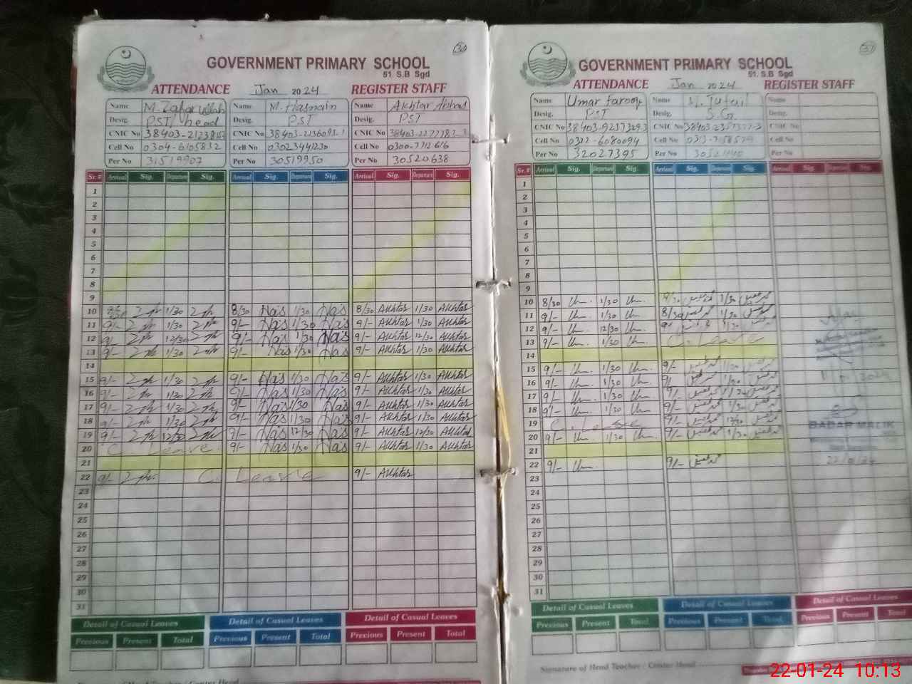 | CNIC | Full Name | Designation | R/C | Absence During Last Calender Month |