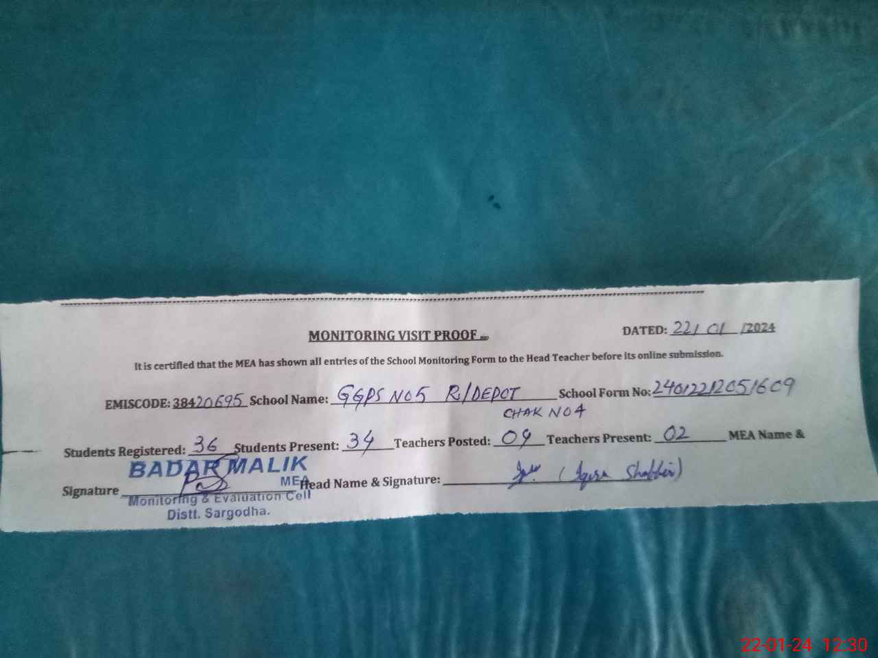 | EMIS Code: 38420695 | Name of School: GGPS NO 5 CHAK NO 4 REMOUNT DEPOT | |||