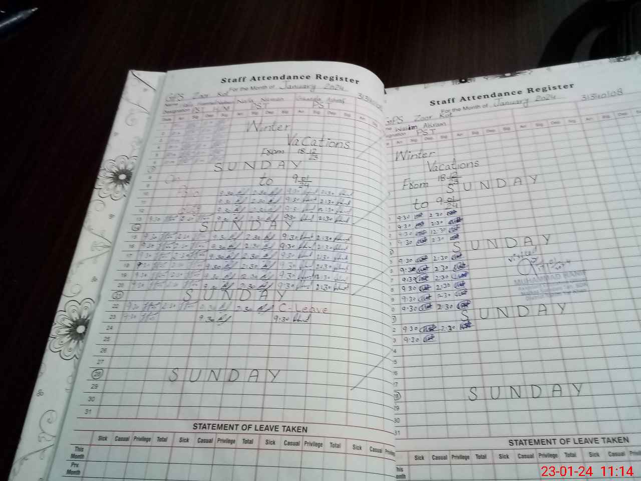 | CNIC | Full Name | Designation | R/C | Absence During Last Calender Month |