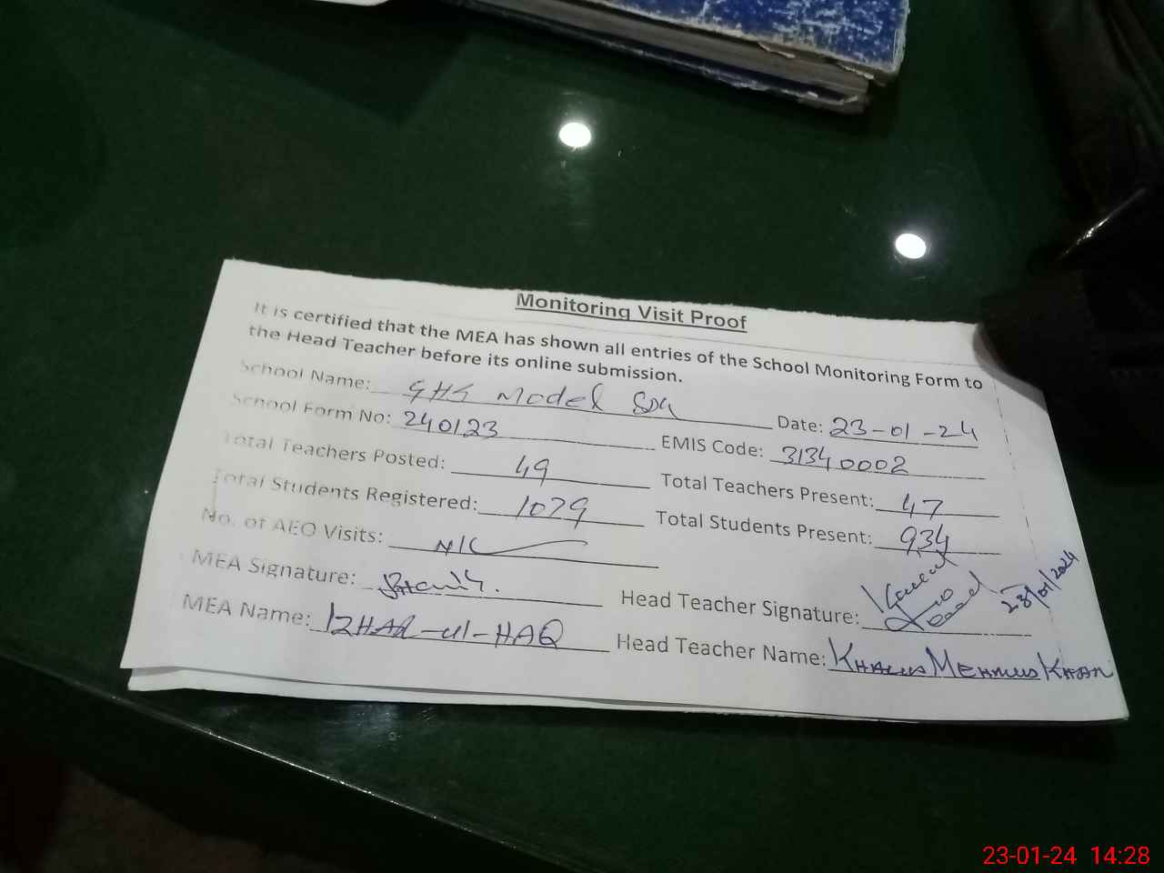 | EMIS Code: 31340002 | Name of School: GHS MODEL | |||