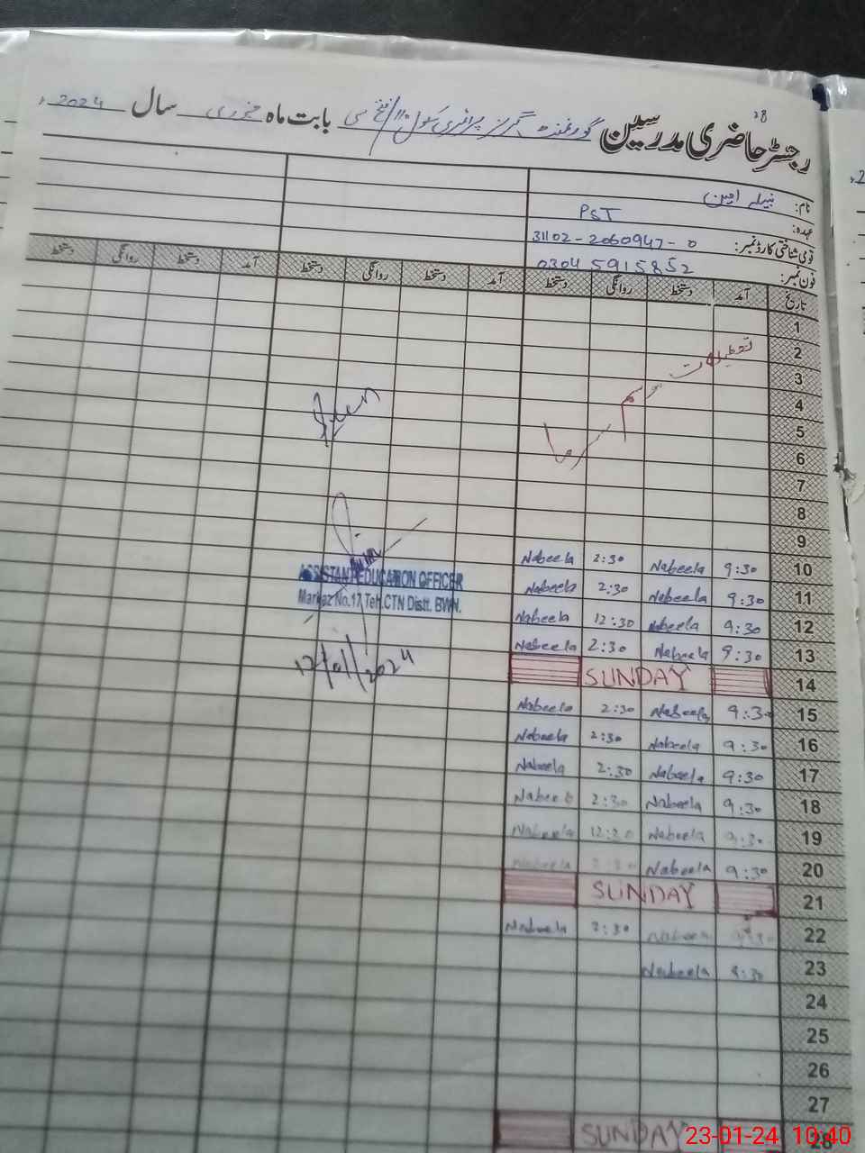 | Name: Na**** Am**** Designation: (School Headmaster's/Headmistress's) PST Phone/Cell Number: 03**** |