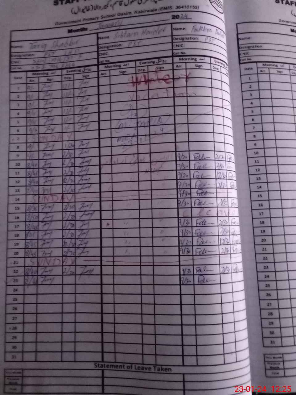 | Name: Mu**** Sa**** Ha**** Designation: (School Headmaster's/Headmistress's) PST Phone/Cell Number: 03**** |