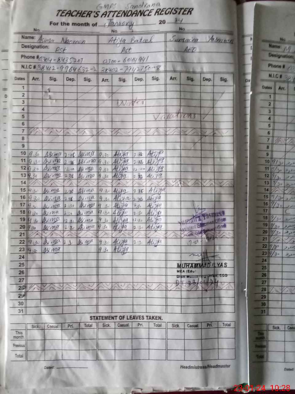 | Name: AS**** NO**** Designation: (School Headmaster's/Headmistress's) ESE (SCI _ MATH) Phone/Cell Number: 03**** |