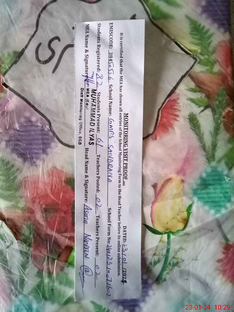 | Certified that this School was Inspected by the Undersigned MEA/DMO Today and the Information Stated Above is as Per Record. | |||||