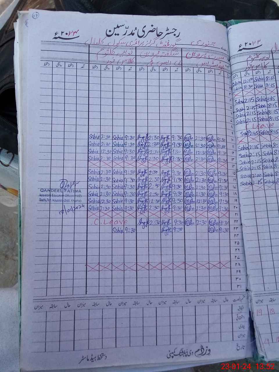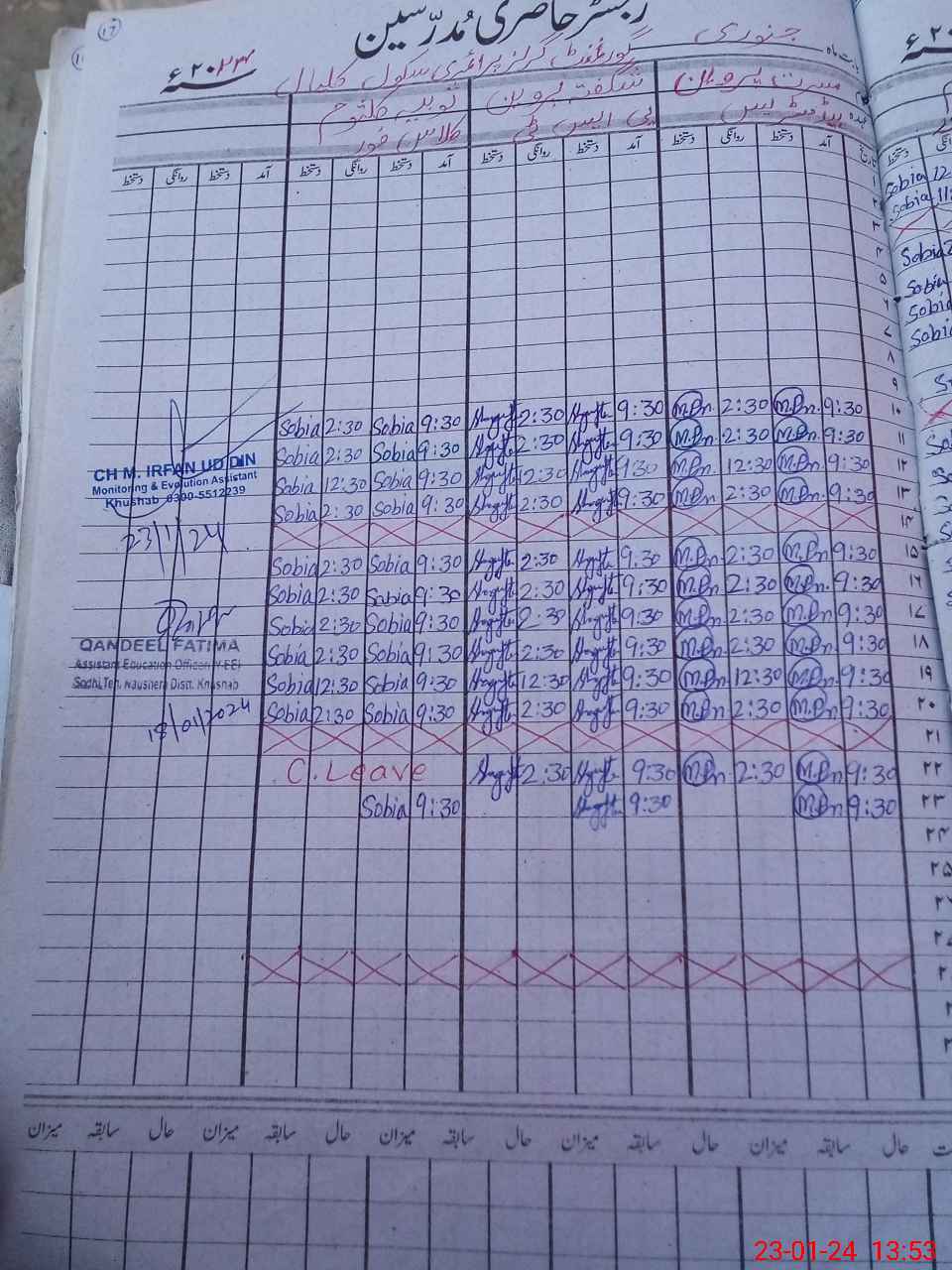 | CNIC | Full Name | Designation | R/C | Absence During Last Calender Month |