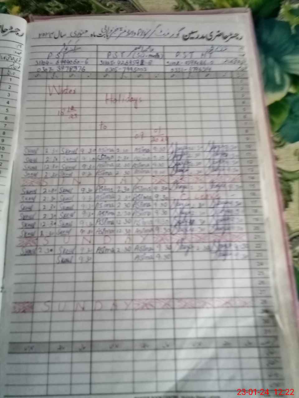 | CNIC | Full Name | Designation | R/C | Absence During Last Calender Month |