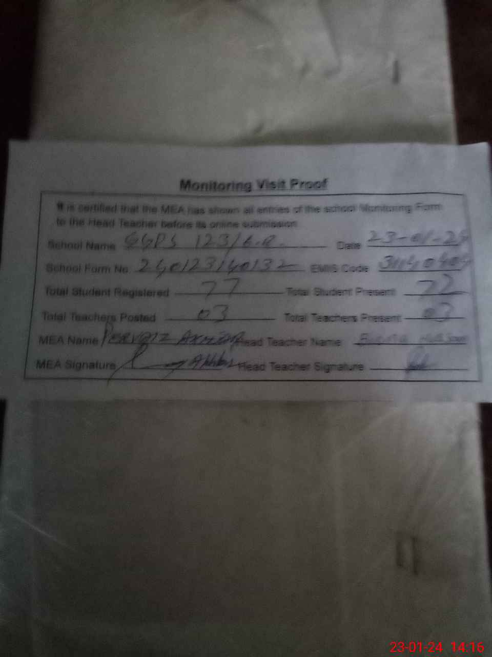 | EMIS Code: 31140404 | Name of School: GGPS CHAK NO 123/6-R | |||
