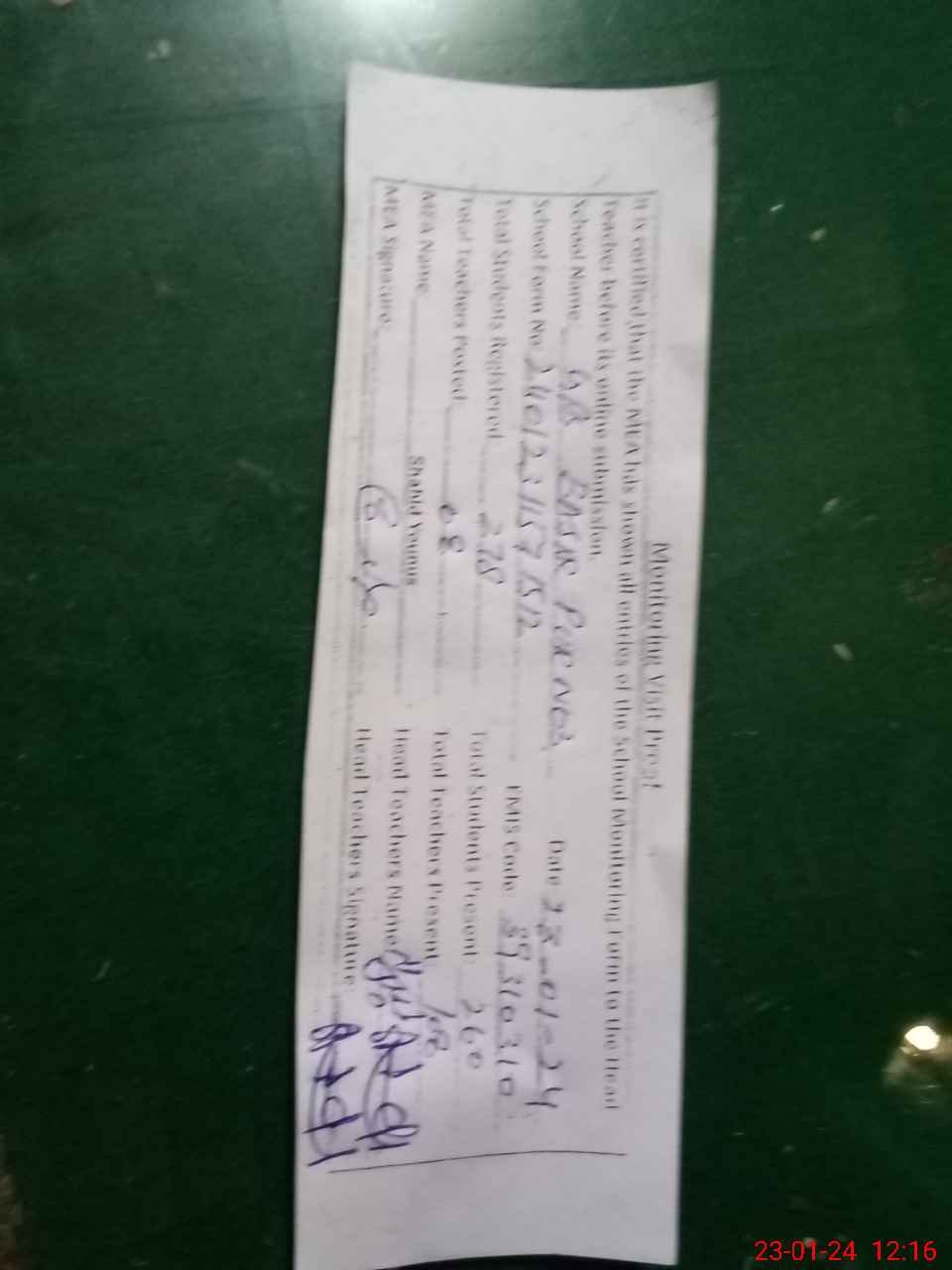 | Attendance Register | Head Teacher | MEA with School | Visit Proof |