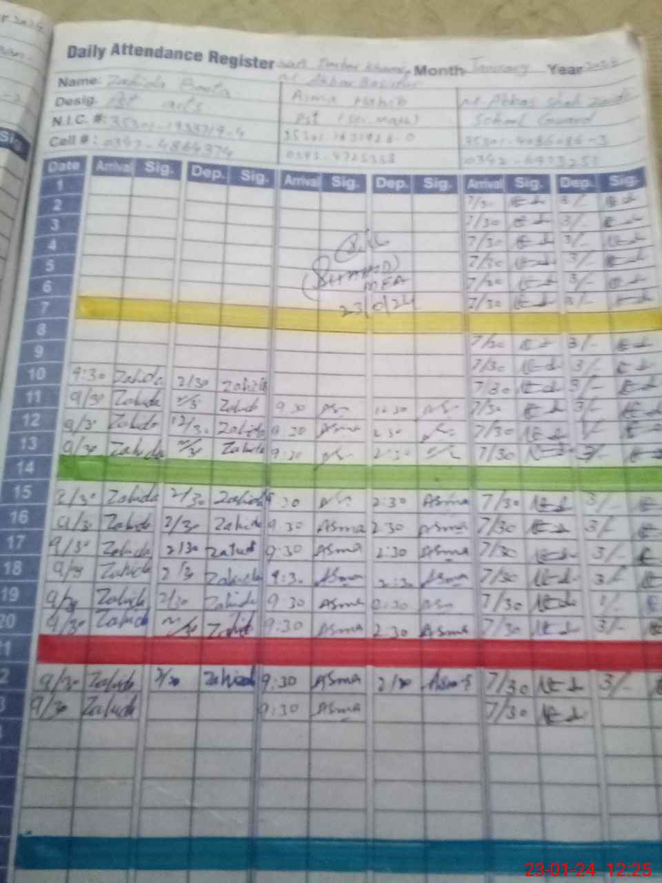 | Name: AZ**** PE**** Designation: (School Headmaster's/Headmistress's) PST Phone/Cell Number: 03**** |