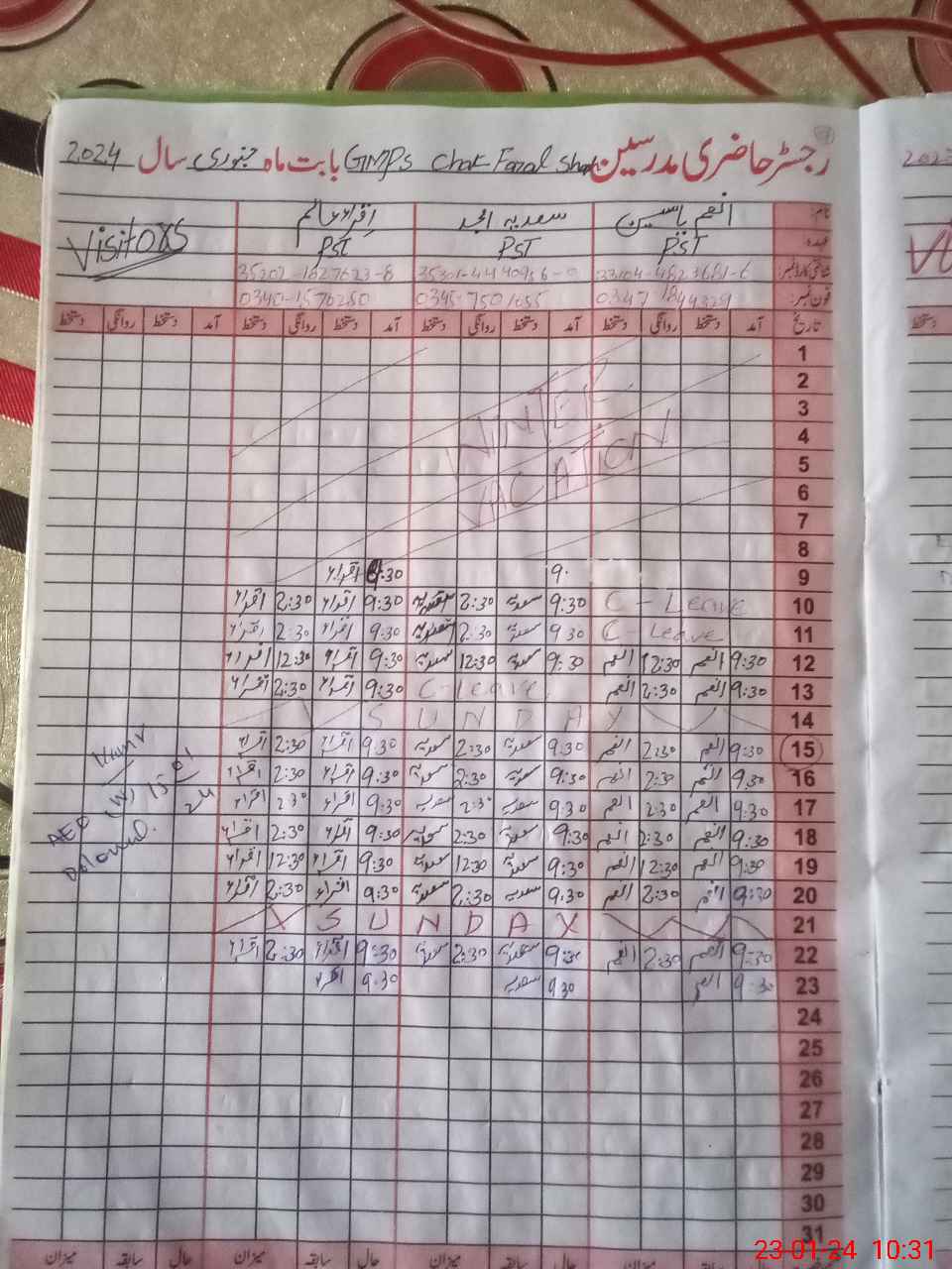 | CNIC | Full Name | Designation | R/C | Absence During Last Calender Month |