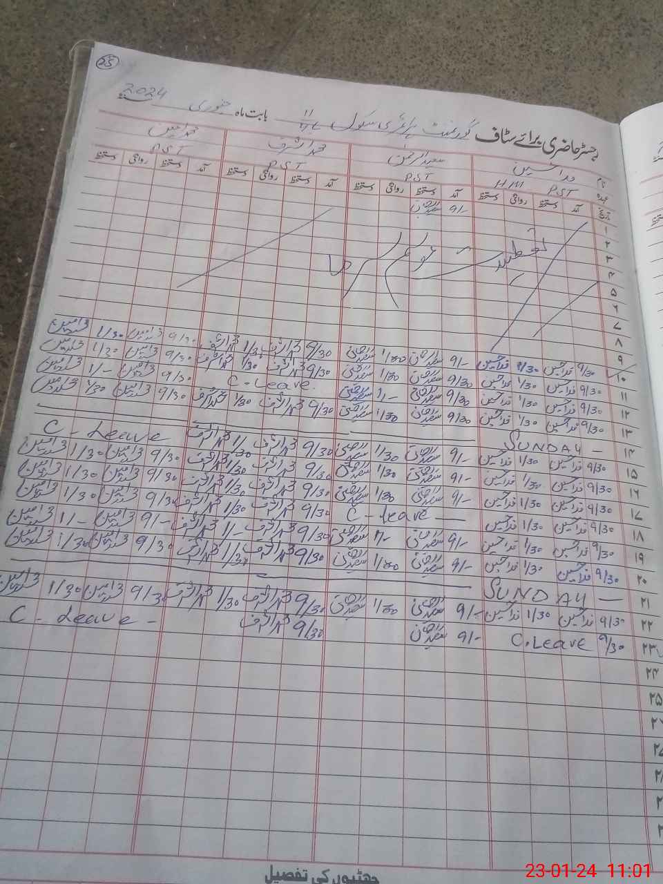| CNIC | Full Name | Designation | R/C | Absence During Last Calender Month |