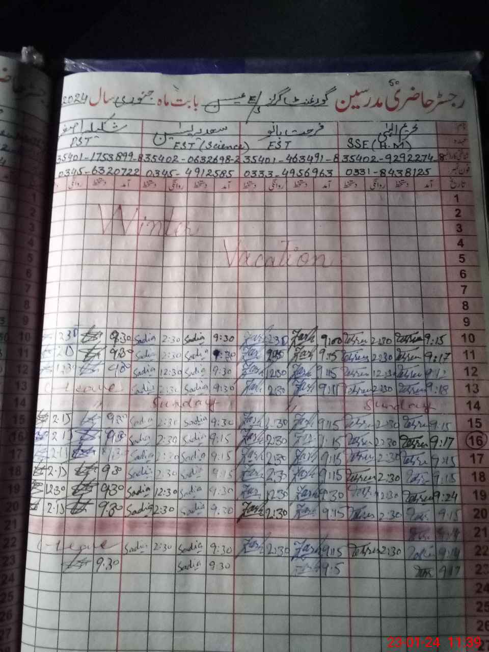 | CNIC | Full Name | Designation | R/C | Absence During Last Calender Month |