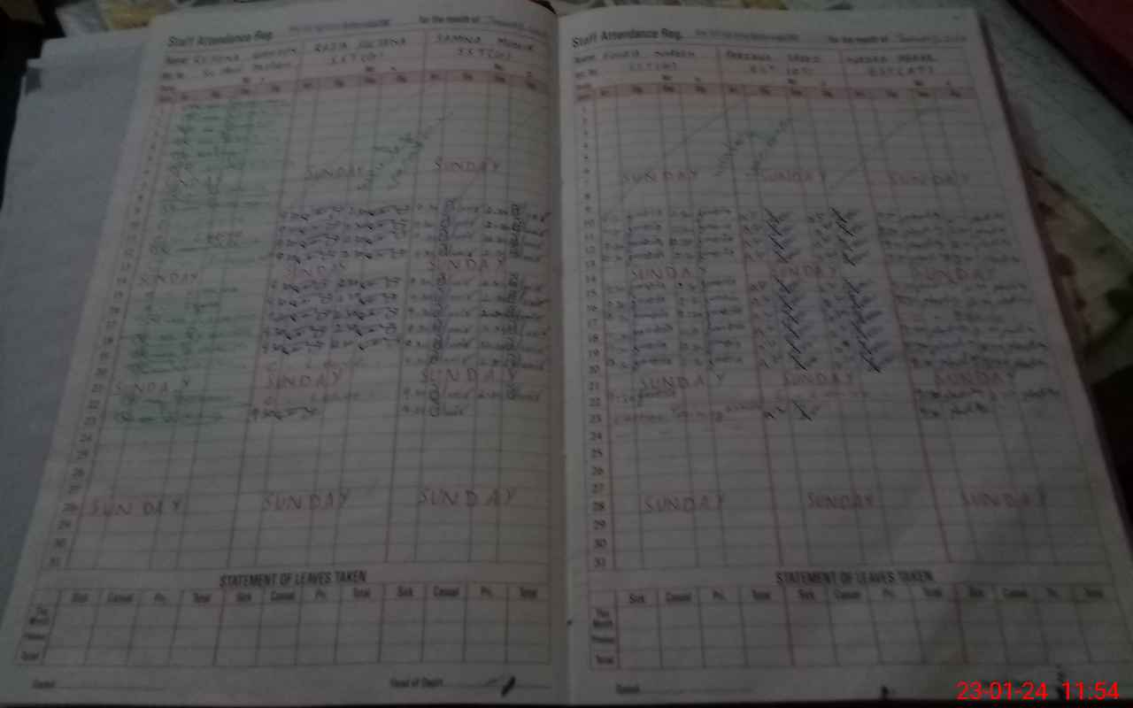 | CNIC | Full Name | Designation | R/C | Absence During Last Calender Month |