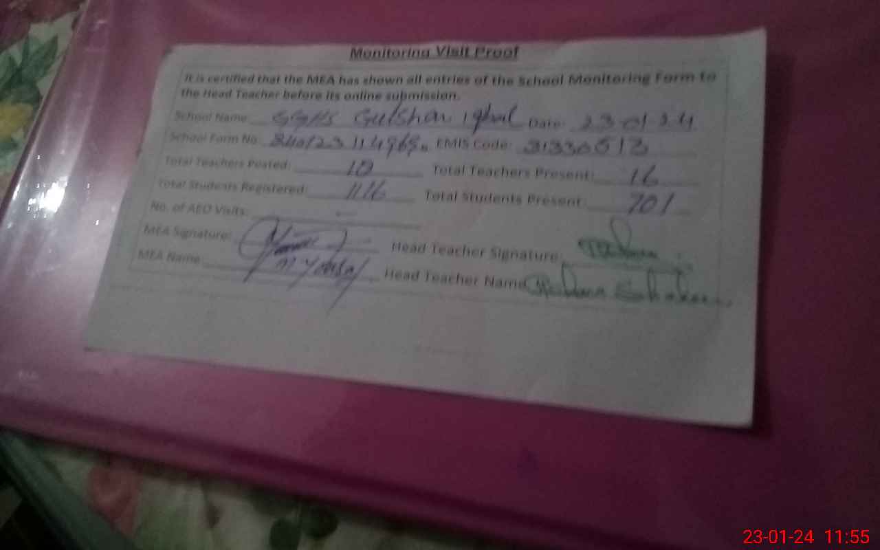 | EMIS Code: 31330513 | Name of School: GGHS GULSHAN IQBAL | |||